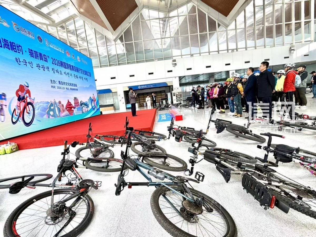 信网3月30日讯 3月29日,“2026韩国游客青岛骑行文化体验之旅”在青岛邮轮母港正式启动。本次活动由青岛市文化和旅游局指导,多家单位联合支持,以“体育+文旅”融合为纽带,深化中韩民间友好往来。