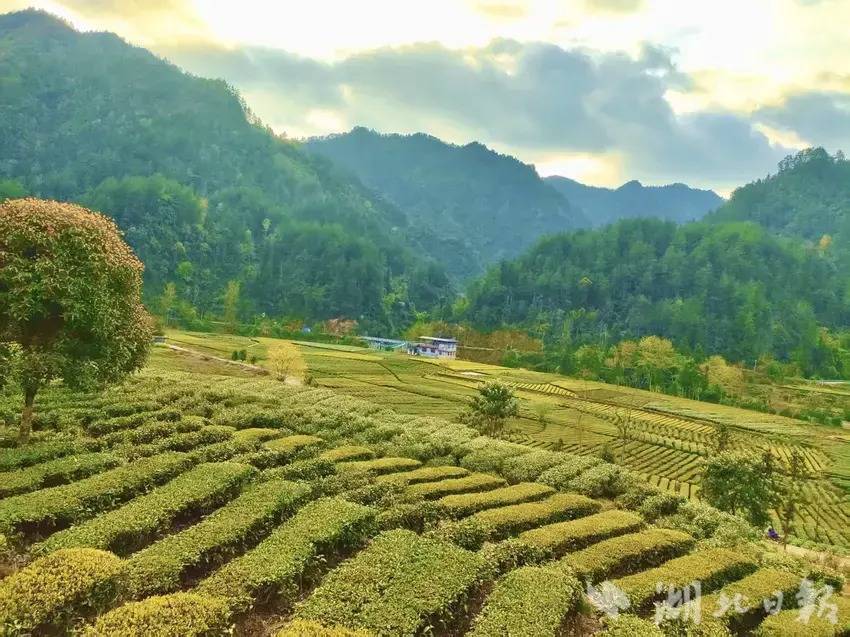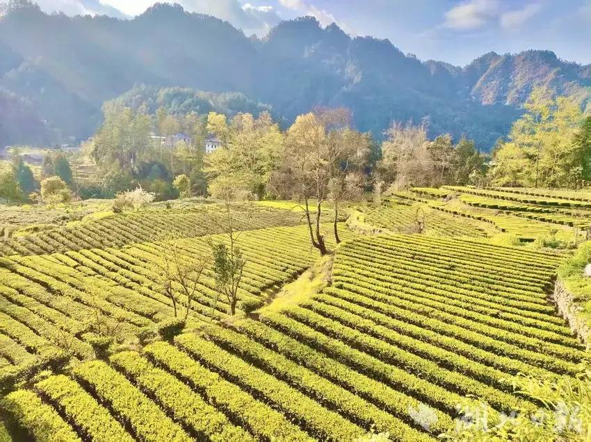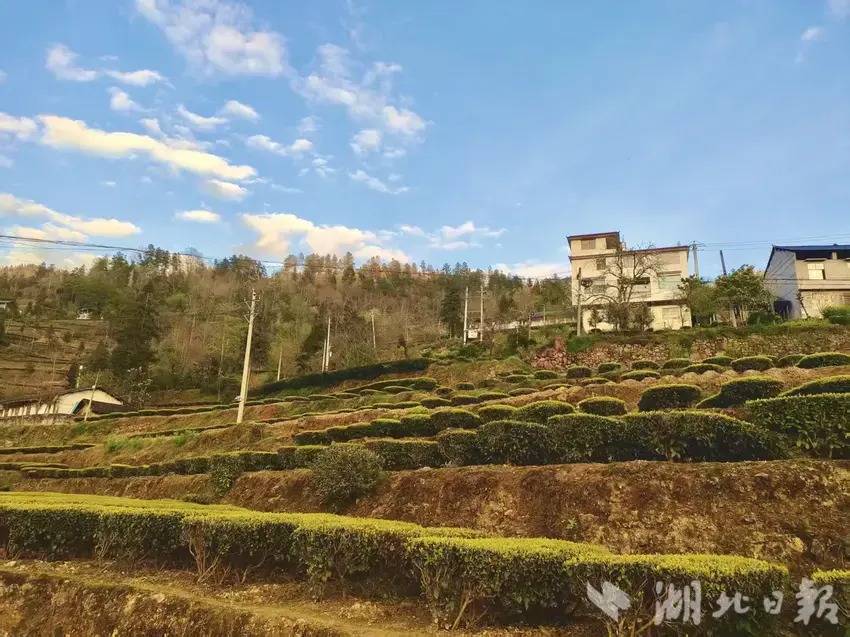 3月28日,新雨初歇,云开雾散。咸丰县清坪镇泗大坝村蓝河两岸,2000余亩标准化生态茶园青翠欲滴——经雨水浸润的茶树舒展新芽,银毫隐现。深浅不一的绿意在坡地上绵延起伏,如一幅天然织锦铺展于蓝河之畔,涌动着春的律动与勃勃生机。(湖北日报客户端讯通讯员 黄锋 秦雪芳)